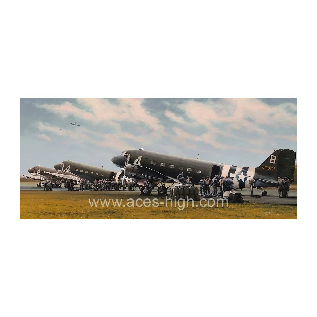Richard Taylor’s stunning painting, Eve of Destiny, has been specially commissioned to honor the veterans who fought with one of the most famous Airborne Divisions in history – the US 101st. Movingly, it depicts the fighting men of one their most illustrious units - Easy Company from the 2nd Battalion, 506th Parachute Infantry Regiment - the famous Band of Brothers, as they take inventory of their equipment during the early evening of 5 June 1944. Alongside them on the hard-standing of Upottery Airfield in Devon the C-47s of the 438th Troop Carrier Group with their hastily-applied invasion stripes, stand primed, ready to carry the elite unit to Normandy in the early hours of D-Day.
